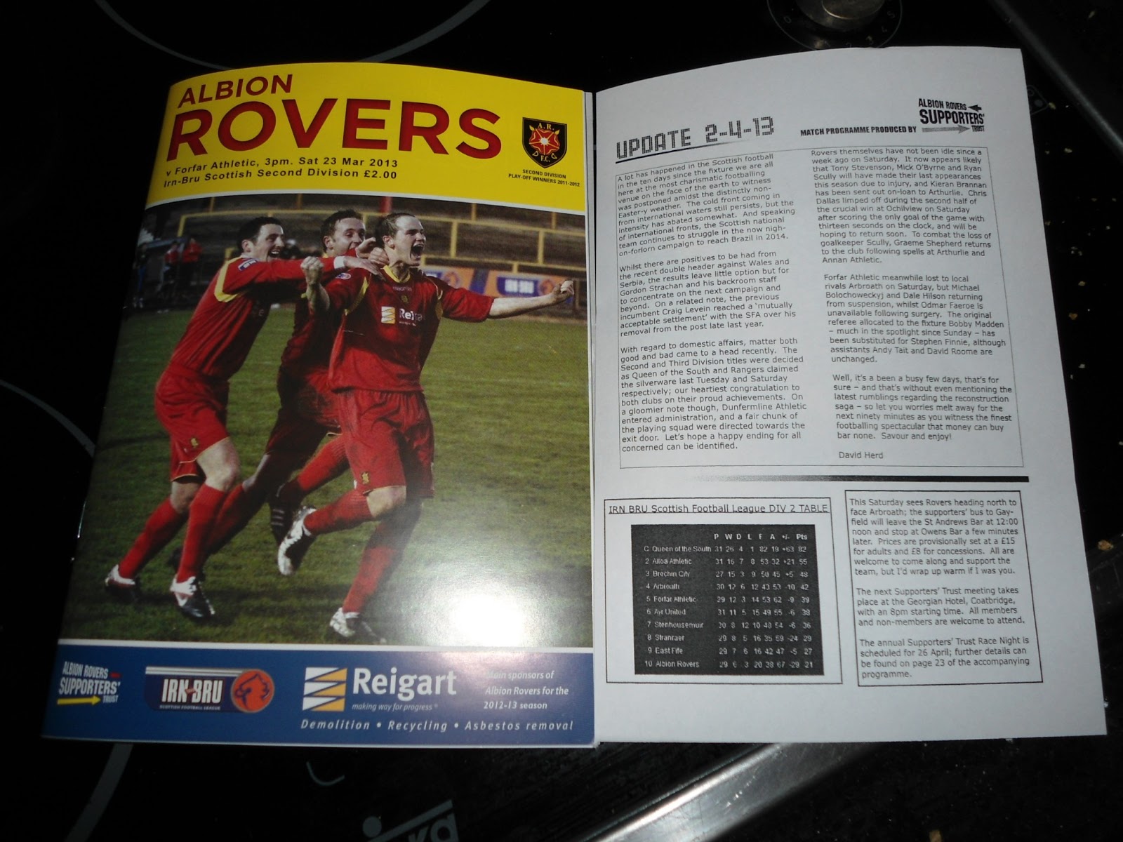 that Brechin were giving Rovers’ relegation rivals East Fife a thrashing. With